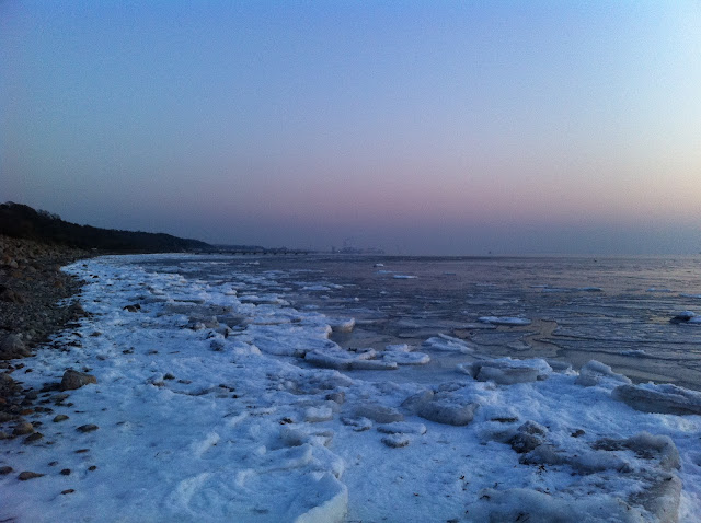 For lack of better inspiration today due to the fact that I'm soo tired, I thought I'd just show you some pictures I took on my phone yesterday evening when my friend and I went for a walk by the beach. We're enduring some serious winter weather right now, minus degrees, snow and ice everywhere...brrrrr, but at least its pretty, right? The sunset and the colours kind of made it worth freezing my legs off :D